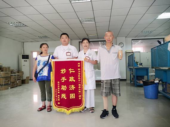 8月25日,遂宁市蓬溪县唐远炳携妻子向省康复辅具技术服务中心送来了“仁政济困 妙手助残”的锦旗,以此感谢省民政厅“福康工程”项目对他的帮助。