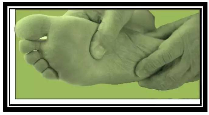 局部按摩:用两个大拇指沿足弓、足跟、肌肉组织来回均匀缓慢地按压,坚持一分钟,换左右脚重复动作。