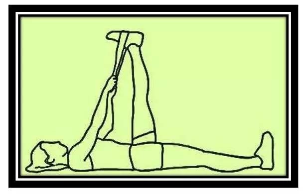 毛巾拉伸运动:为帮助放松肌肉,起床前,双手持一条毛巾或腰带两端,绕足底绷直,轻拉至大腿跟部明显张力,保持30秒,反复5次。